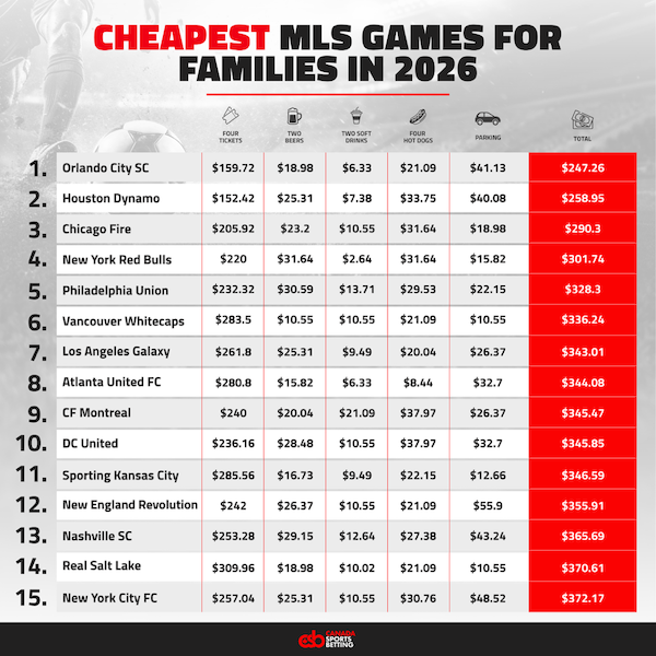 A new analysis from CanadaSportsBetting.ca ranks MLS stadiums by the estimated total cost for a family of four to attend a match, combining typical expenses for four tickets, parking, and a standard set of concessions (two beers, two soft drinks, and four hot dogs).